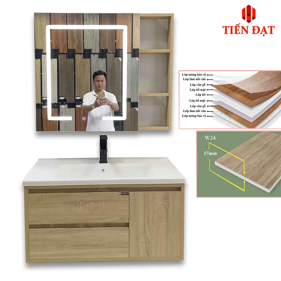 Vật liệu sản xuất tủ lavabo cũng là mối quan tâm lớn của Tiến Đạt, bởi vậy tiến đạt lựa chọn hãng ván có thương hiệu lớn, nguồn gốc rõ ràng. Tiến đạt chọn ván nhựa Pima để sản xuất tủ vì một trong những điểm nổi bật nhất của ván Pima là khả năng chống ẩm tuyệt đối, không cong vênh. Nhờ đó, sản phẩm trở thành lựa chọn lý tưởng cho khu vực môi trường nước như phòng tắm, nhà vệ sinh . Ngoài ra, ván còn chống mối mọt, chịu nước tốt, không cháy lan, an toàn sức khỏe,.. Với những ưu điểm vượt trội đó, ván nhựa Pima Tiến Đạt lựa chọn hoàn hảo cho các sản phẩm nội thất phòng tắm cao cấp, vừa đảm bảo yếu tố thẩm mỹ, vừa duy trì độ bền bỉ lâu dài theo thời gian. Không những giúp không gian sống của bạn luôn tươi mới, sang trọng, mà còn tiết kiệm chi phí bảo trì, sửa chữa trong tương lai.